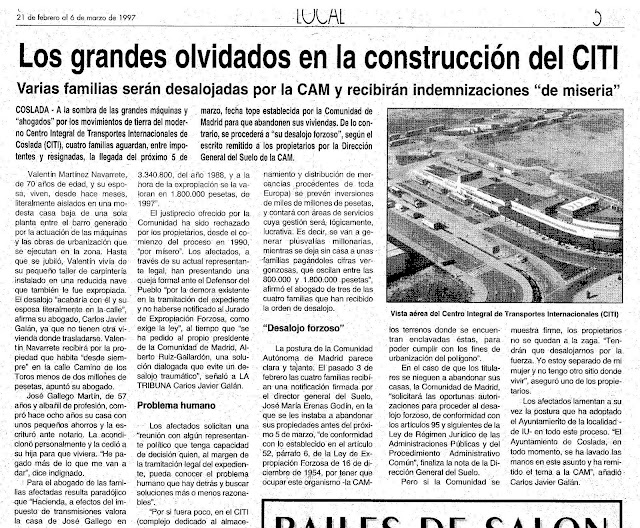 “Por si fuera poco, en el CITI (complejo dedicado al almacenamiento y distribución de mercancías procedentes de toda Europa) se prevén inversiones de miles de millones de pesetas, y contará con áreas de servicios cuya gestión será, lógicamente, lucrativa. Es decir, que se van a generar plusvalías millonarias, mientras se deja sin casa a unas familias pagándoles cifras vergonzosas, que oscilan entre las 800.000 y 1.800.000 pesetas”, afirmó el abogado de tres de las cuatro familias que han recibido la orden de desalojo.